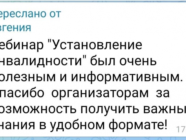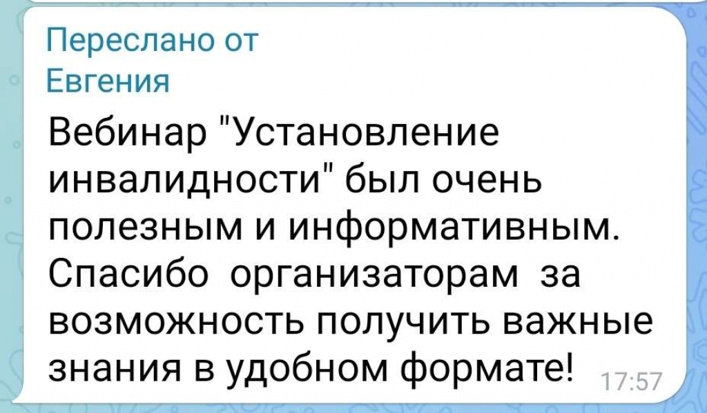 Это второй вебинар, который прошел в "Правовой школе", который помог разобраться родителям, как грамотно оформить необходимые бумаги для получения направления в медицинскую организацию. Именно такое направление важно составить качественно и вовремя, ведь оно отразит истинное состояние здоровья вашего ребенка или близкого взрослого человека, что значительно облегчит дальнейшую работу комиссии по оценке инвалидности.
